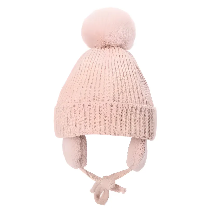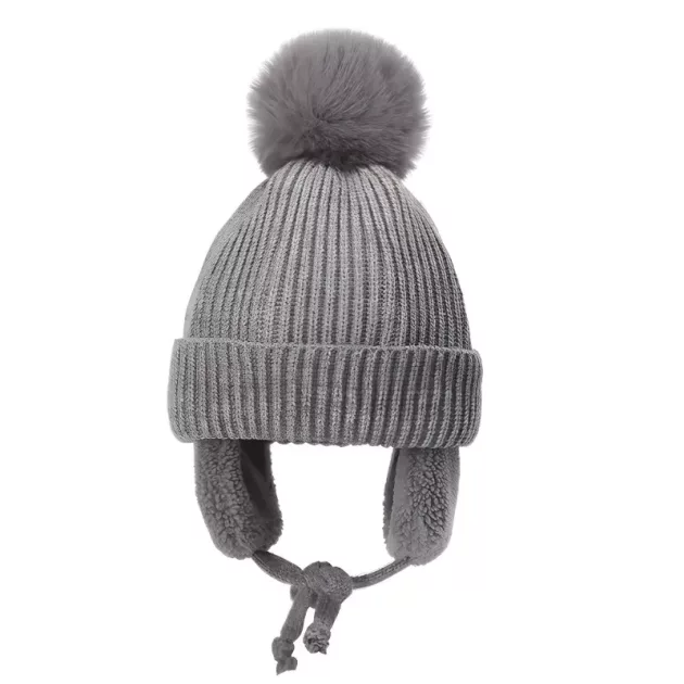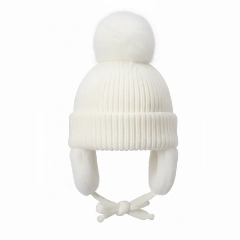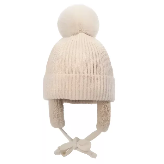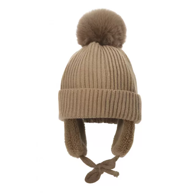 Winter Knitted Hat with Ear Flaps and Pom Pom for Kids
