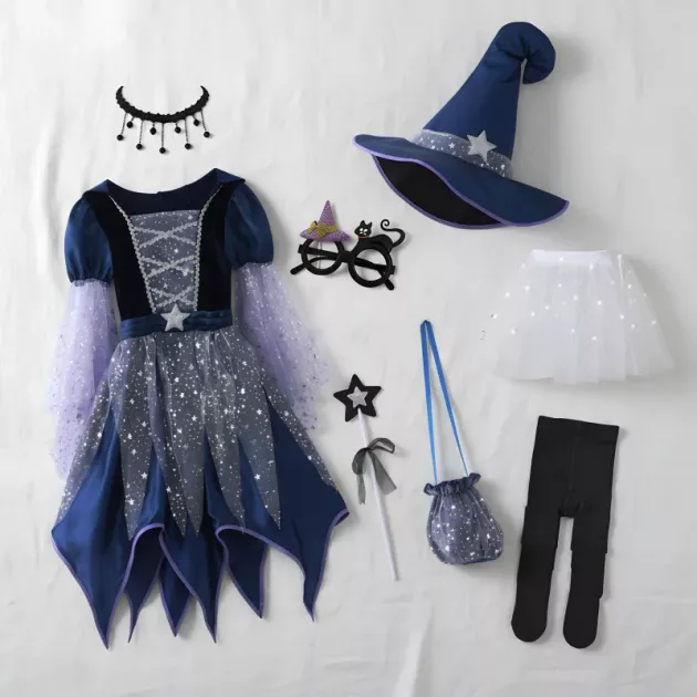 My daughter danced all night in her new witch dress. She didn’t want to take it off! Loved the sparkling hat and the cute little bag.