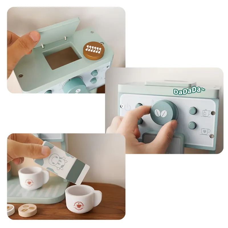 Wooden Coffee Machine Toy Kitchen Pretend Play for Kids
