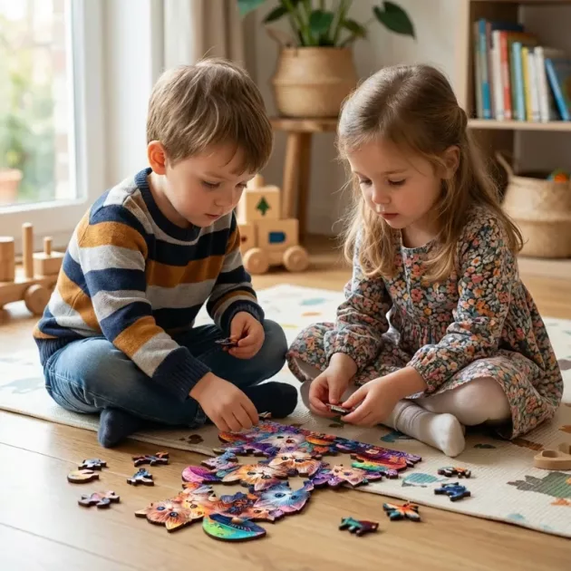 For rainy days, this wood jungle puzzle is perfect. Everyone gets involved, from my little brother to my dad! We laugh a lot and make cool animal scenes.