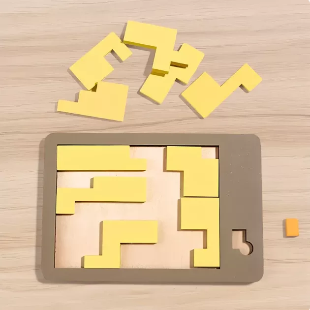 My mom got this wooden puzzle for rainy days. Now I don’t mind staying inside! I get so creative with the shapes.