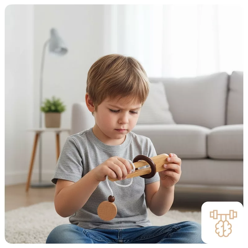 Keep young minds engaged using this clever puzzle challenge. The unique design keeps everyone focused while concentration improves quickly. Wooden materials give peace of mind about safety during playtime.